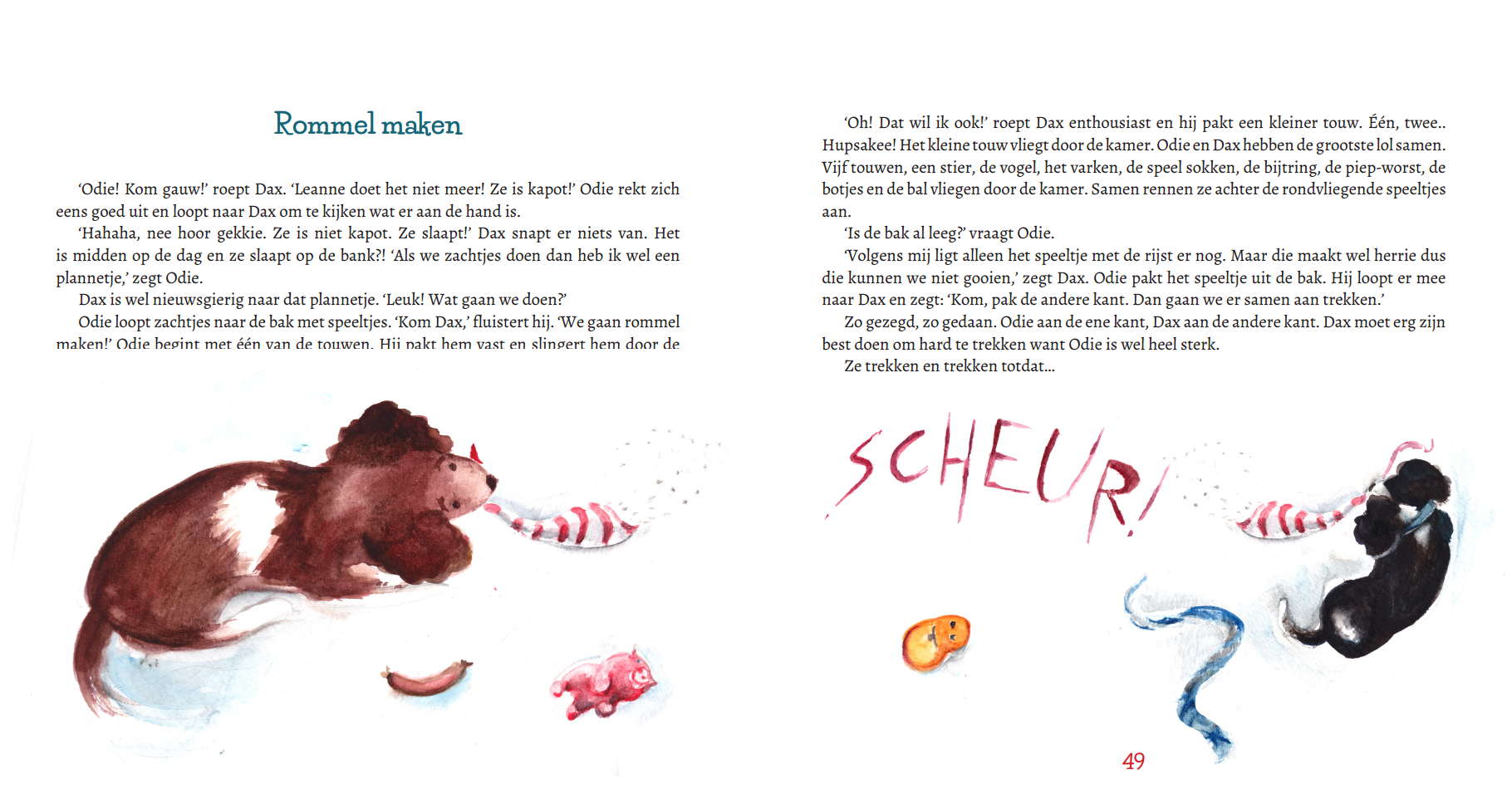 Om een idee te krijgen in welke stijl 'De Avonturen van Dax' geschreven is, hoe de illustraties zijn ingezet om het verhaal op een speelse wijze te helpen verbeelden, zijn hier een paar voorblikken op de inhoud van het boek. Het boek bestaat uit elf verhaaltjes, die elk afzonderlijk (voor)gelezen kunnen worden.